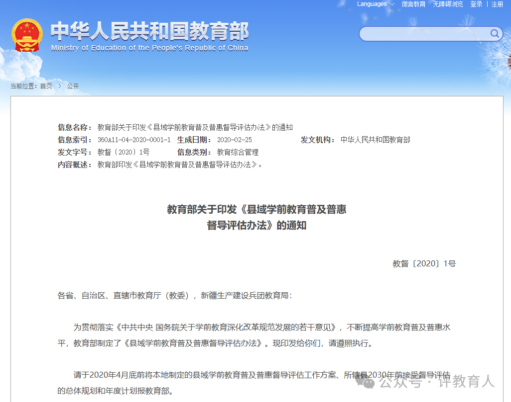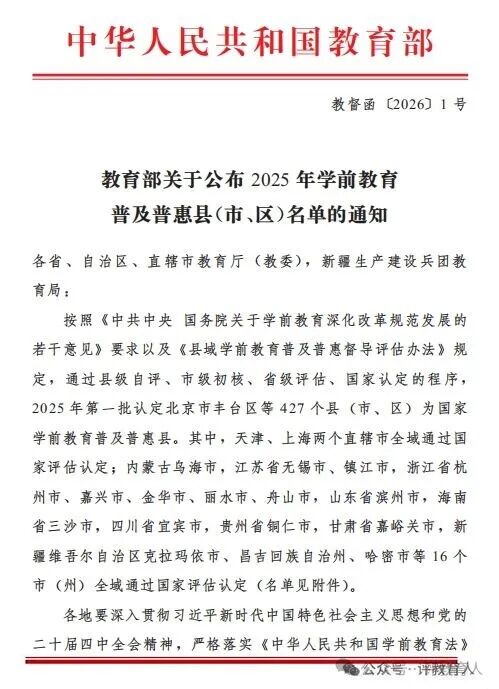 教育部关于公布2025年学前教育普及普惠县(市、区)名单的通知