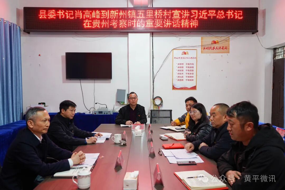 在新州镇五里桥村,肖高峰详细了解乡村建设、乡村治理、安全生产、基层党建等情况。他说,习近平总书记时隔四年再次亲临贵州考察,主题特别重大、时机特别关键、关怀特别深切,为我省经济社会发展把脉定向,擘画新蓝图新愿景,是贵州发展历程中极具历史性、标志性、里程碑意义的大事要事,是全省人民热切期盼的喜事盛事。他强调,要深入学习贯彻习近平总书记在贵州考察时的重要讲话精神,深刻领会精神要义和丰富内涵,切实内化于心、外化于行,自觉在衷心拥护“两个确立”、忠诚践行“两个维护”上见思想、见行动、见实效。要坚定不移走高质量发展之路,立足资源优势,大力发展乡村产业。要充分发挥党员在巩固拓展脱贫攻坚成果同乡村振兴有效衔接中的示范带动作用,加快推进美丽乡村建设,大力发展乡村文化旅游,发动群众深入开展人居环境整治,探索推行基层治理新模式,有序推进乡村全面振兴。