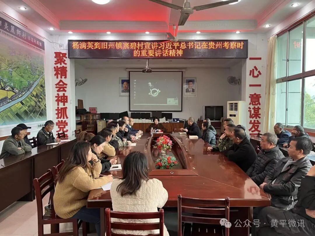 在旧州镇寨碧村,杨满英与村“两委”成员围坐在一起,面对面地深入宣讲习近平总书记在贵州考察时的重要讲话精神。她指出,习近平总书记专程到黔东南州黎平县肇兴侗寨考察,是黔东南州人民热切期盼的喜事盛事。要深刻认识习近平总书记考察贵州的重大政治意义、实践意义和深远历史意义,坚定自觉在衷心拥护“两个确立”、忠诚践行“两个维护”上见思想、见行动、见实效。并强调,要坚持以高质量发展统揽全局,发挥资源优势、立足比较优势、尊重群众意愿发展农业,深挖特色文化、注重业态提升发展旅游,持续优化营商环境,更好统筹发展和安全,守好发展和生态两条底线,因地制宜发展壮大县域经济、村集体经济,切实增强人民群众获得感、幸福感、安全感。