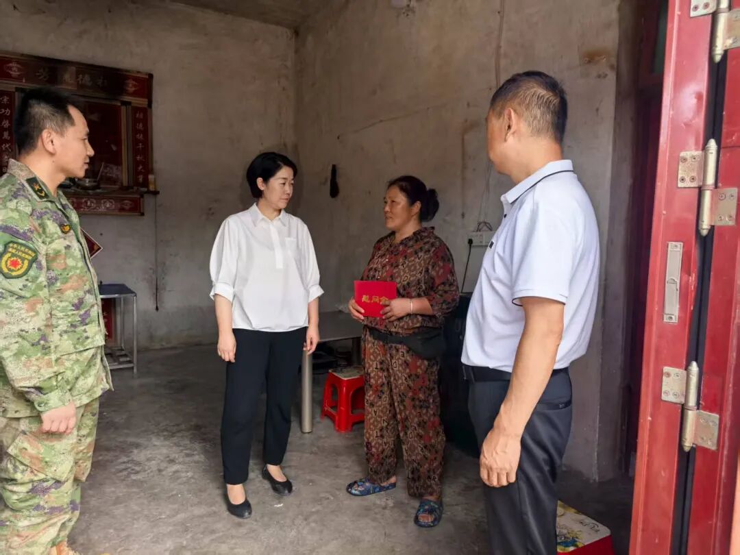 随后,杨满英一行前往旧州镇,走访困难退役军人李孝荣、朱品贵、陈克林及现役军人潘宽宽家属,与他们及亲属亲切交谈,询问健康和生活状况,送上慰问金并叮嘱保重身体,感谢他们为党和国家事业的贡献。她指出,要扎实做好拥军优属工作,同时强化服务、提升水平,用心帮助军属解难,让军人安心戍守、军属暖心生活,共同凝聚起强国兴军的磅礴力量。
