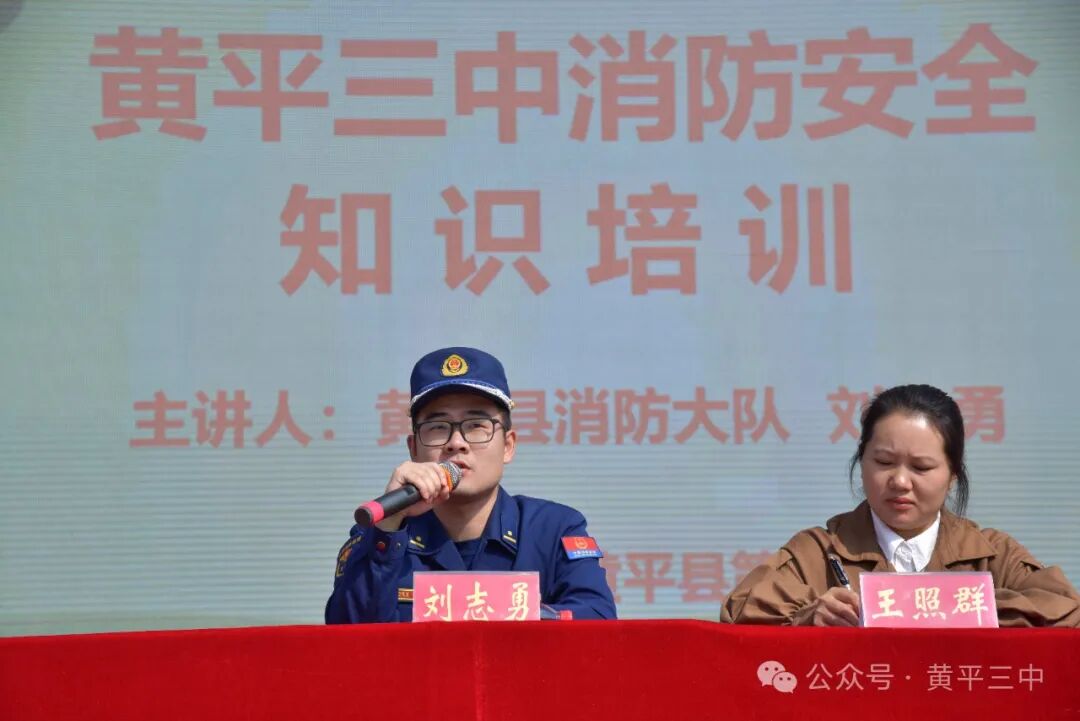 演练活动结束后,学校组织全体师生集中观看了上级部门制作的法治宣讲视频,并邀请黄平县消防救援站副站长刘志勇和相关工作人员对全校师生进行了消防安全知识培训和消防灭火操作现场指导。