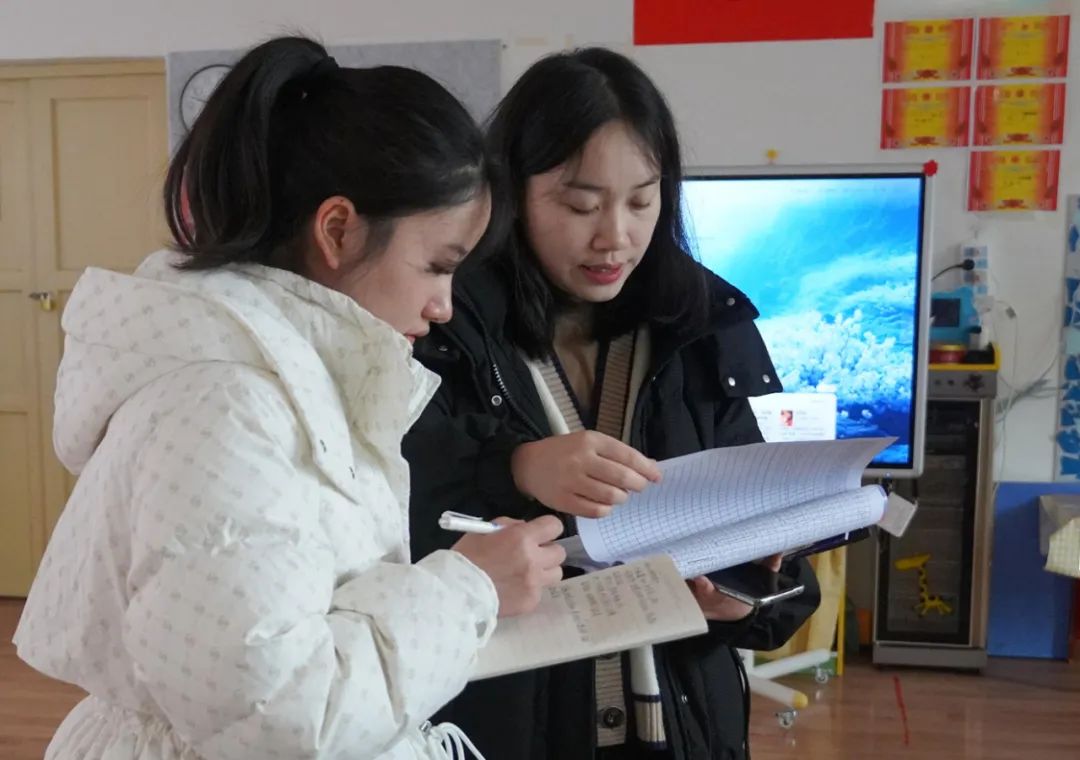 ↑2月26日,贵阳市观山湖区第三幼儿园许娅(右)在黄平县浪洞镇中心幼儿园开展普及普惠帮扶指导工作。(杨玲 摄)