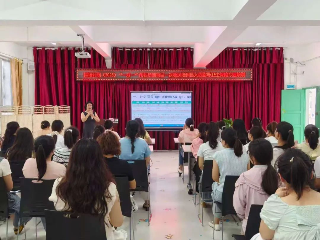 ↑2025年7月1日,国培计划(2025)“一对一”帮扶培训项目—送教送培到县入园指导卫生保健专题培训,班玉君讲师为学员授课。(何忠恋 摄)
