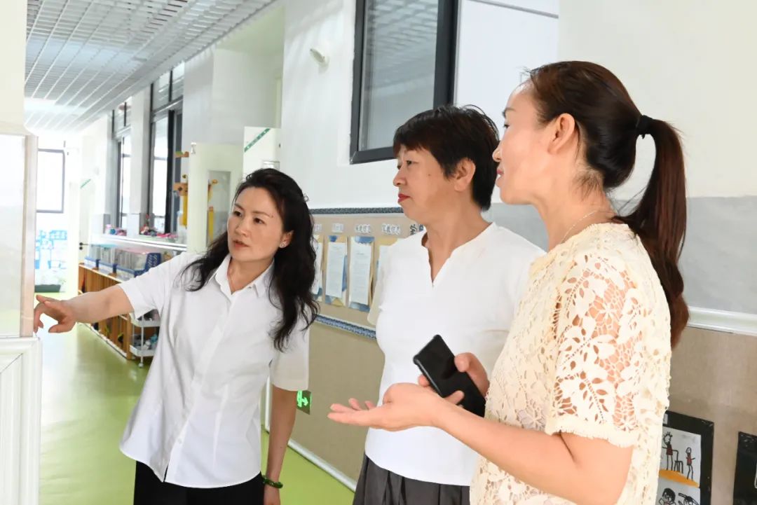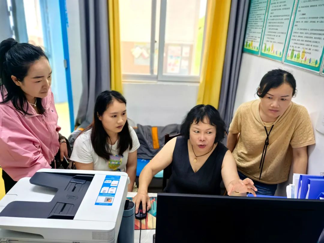 ↑2025年7月1日,清镇市机关幼儿园党支部副书记,唐振梅(左二)、原贵阳幼儿师范高等专科学校副校长赵雅卫(左一)在黄平新州镇第三幼儿园入园指导。(潘秋琴 摄)