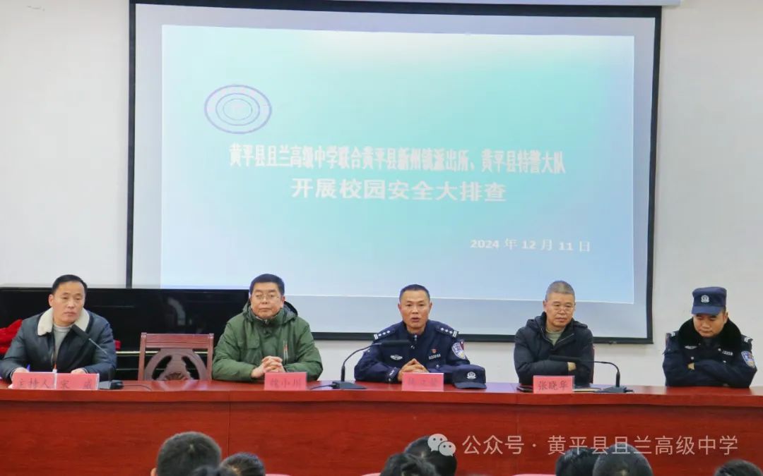 为进一步加强学校安全管理,切实维护校园安全稳定,落实“安全第一,预防为主”的方针,确保给全校师生提供一个安全、舒适、整洁、温馨的校园环境,并将常态化校园安全排查落到实处。12月11日,黄平县且兰高级中学联合黄平县新州镇派出所、黄平县特警大队开展校园安全大排查行动。