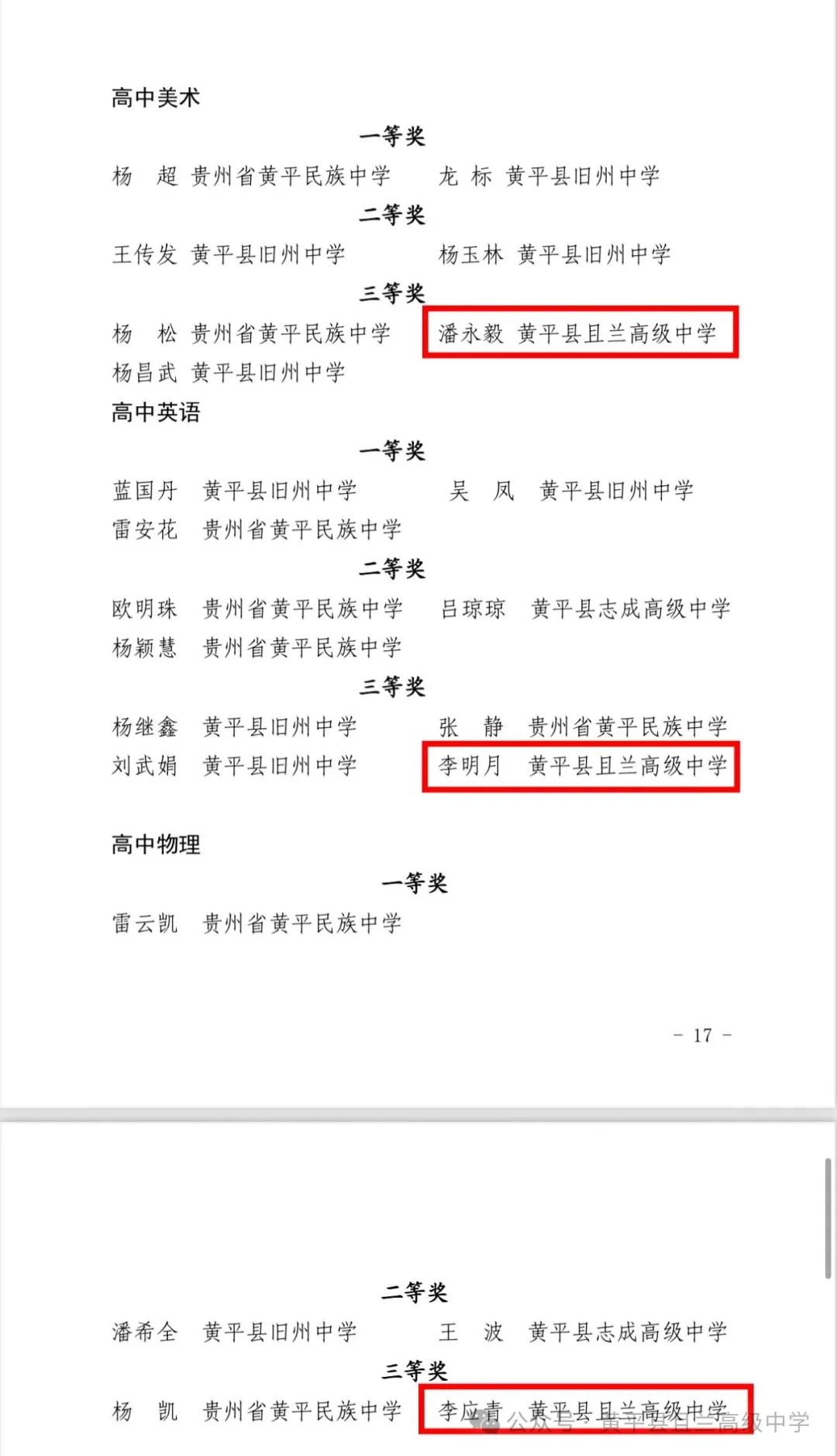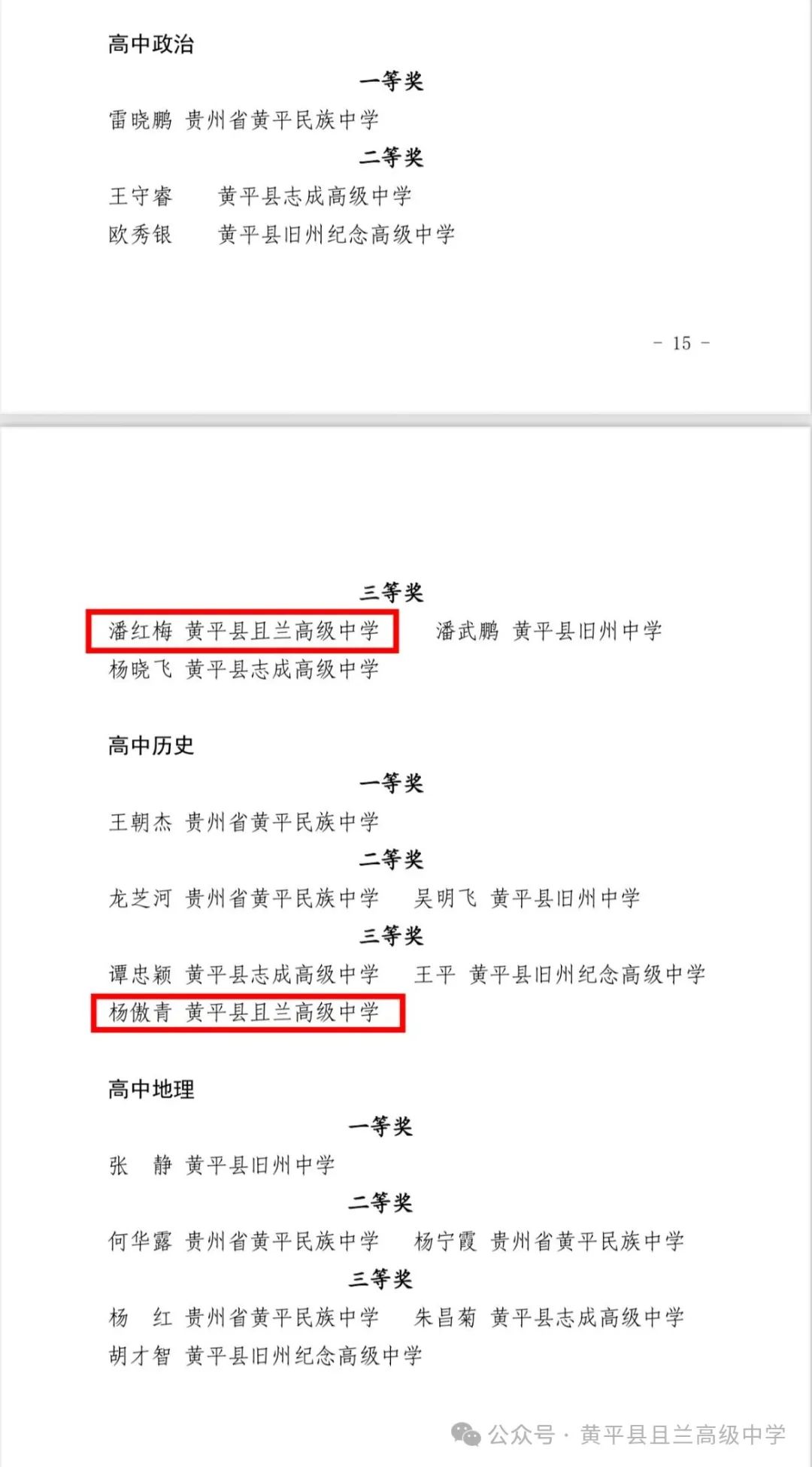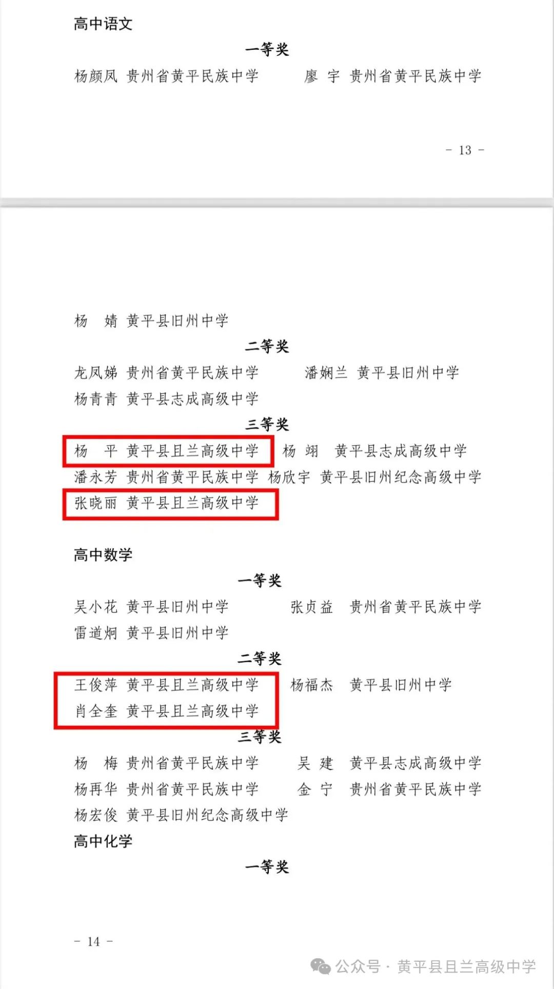 热烈祝贺!在黄平县 2025 年(上半年)中小学教师优质课(教学技能大赛)中,黄平县且兰高级中学肖全奎老师、王俊萍老师荣获高中数学二等奖,杨平老师、张晓丽老师荣获高中语文三等奖,李明月老师荣获高中英语三等奖,潘红梅老师荣获高中政治三等奖,杨傲青老师荣获高中历史三等奖,潘永毅老师荣获高中美术三等奖,李应青老师荣获高中物理三等奖!