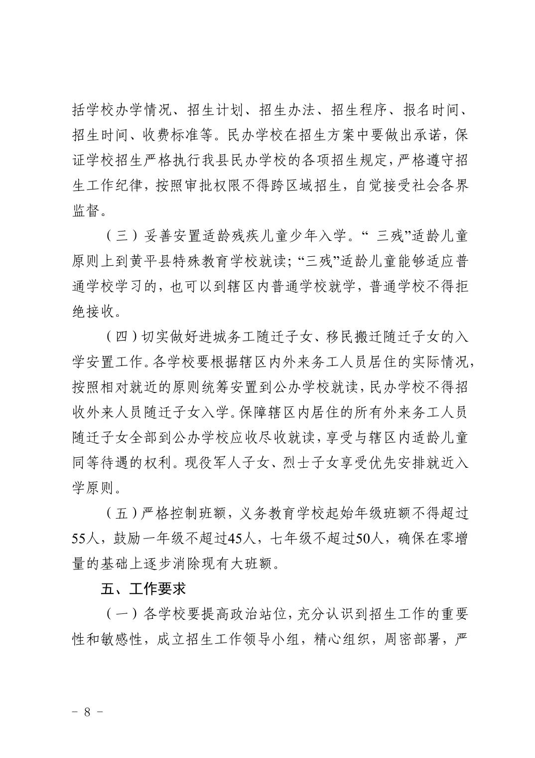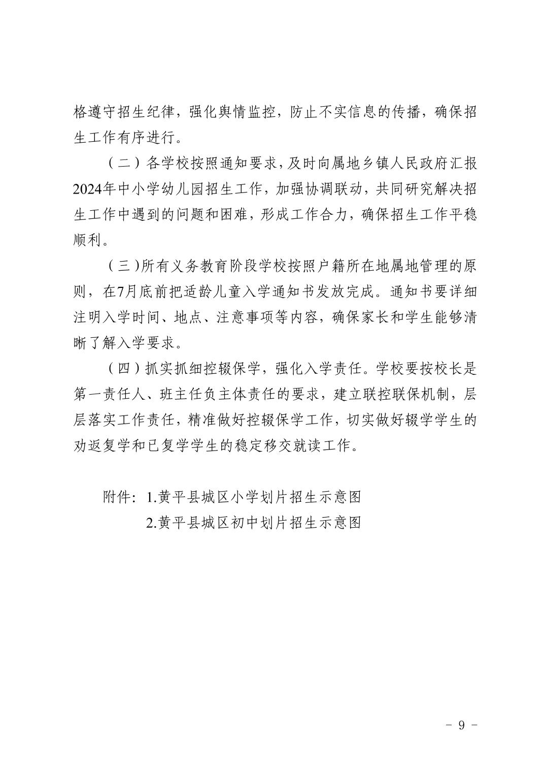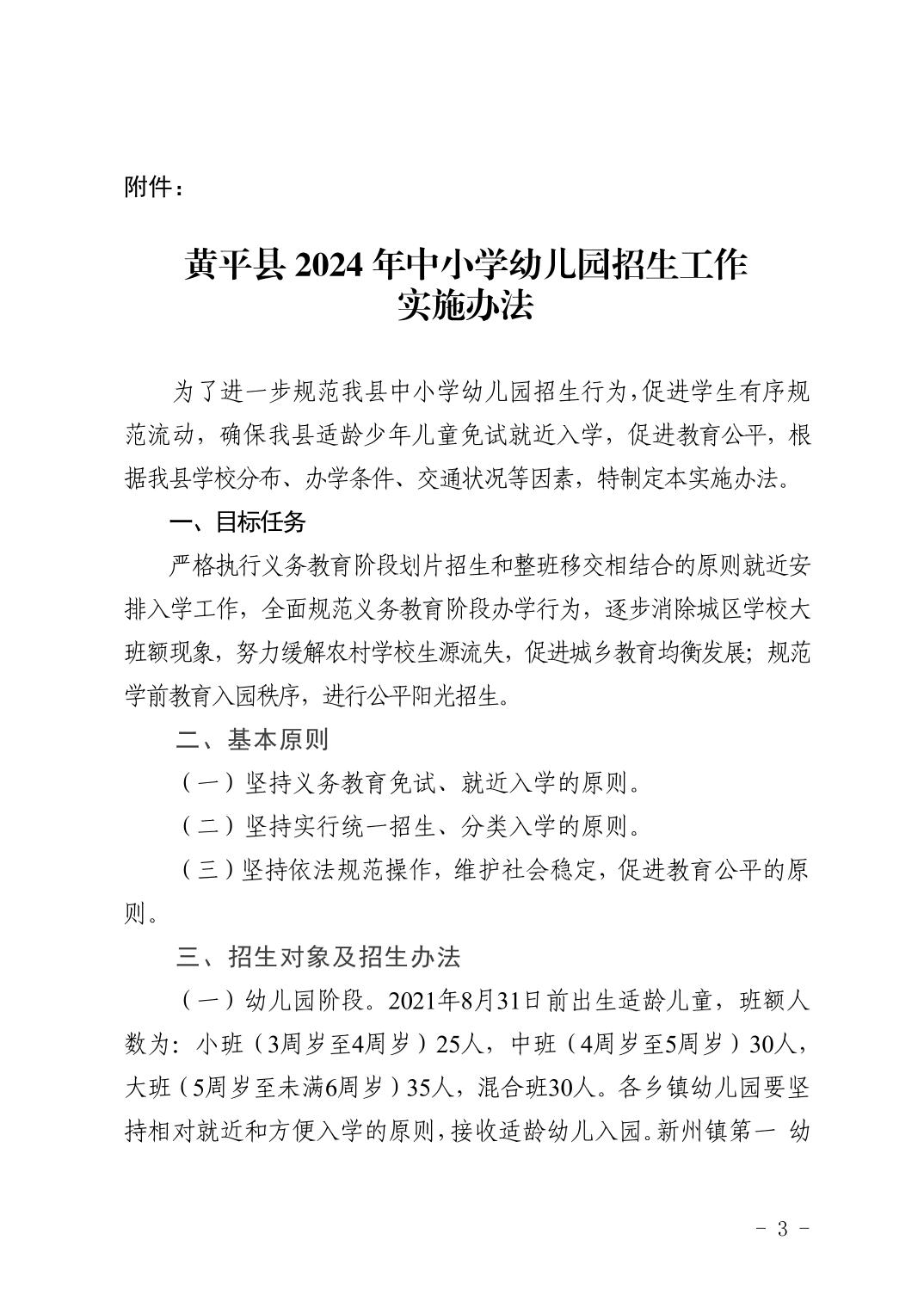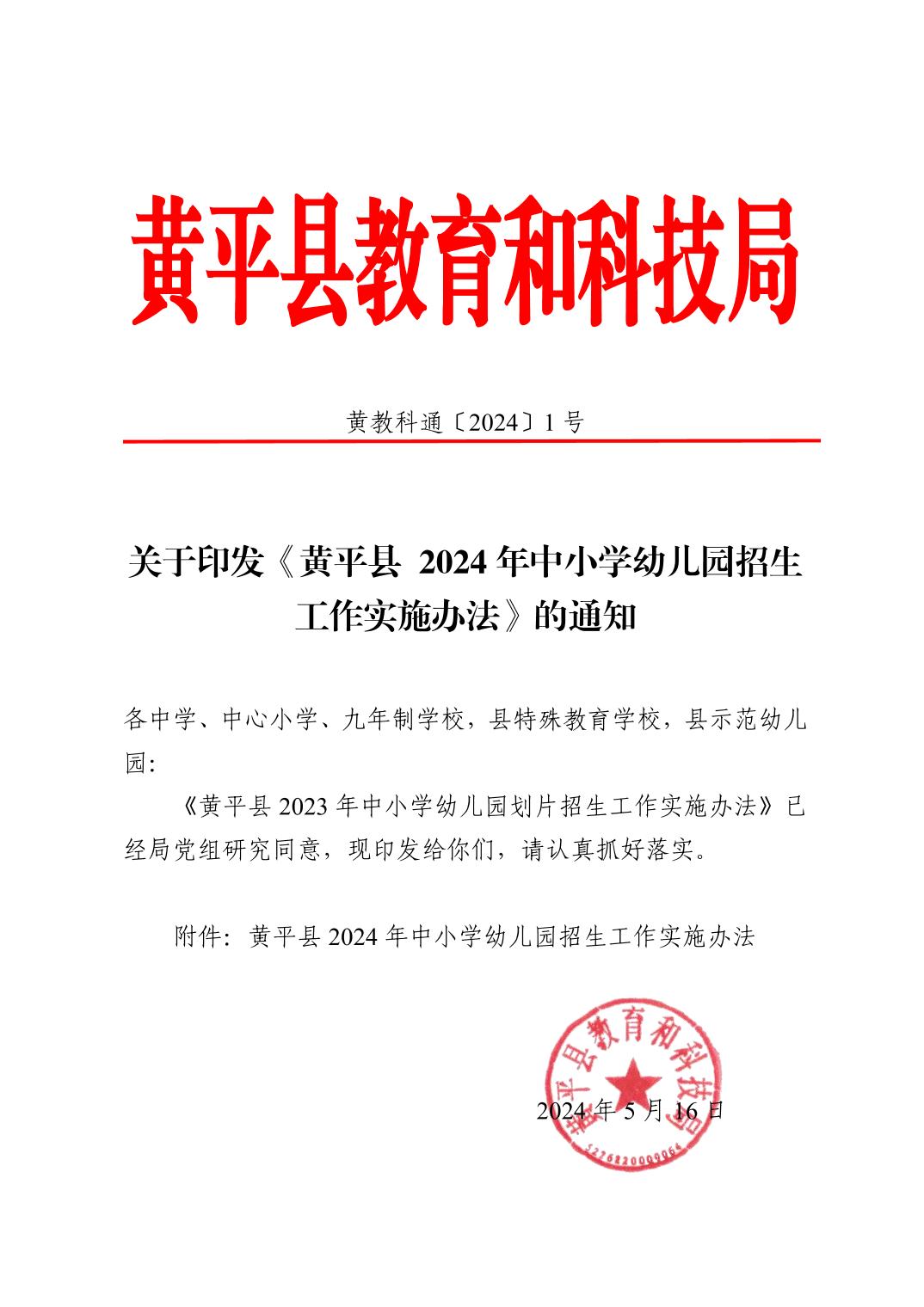 关于印发《黄平县 2024年中小学幼儿园招生工作实施办法》的通知